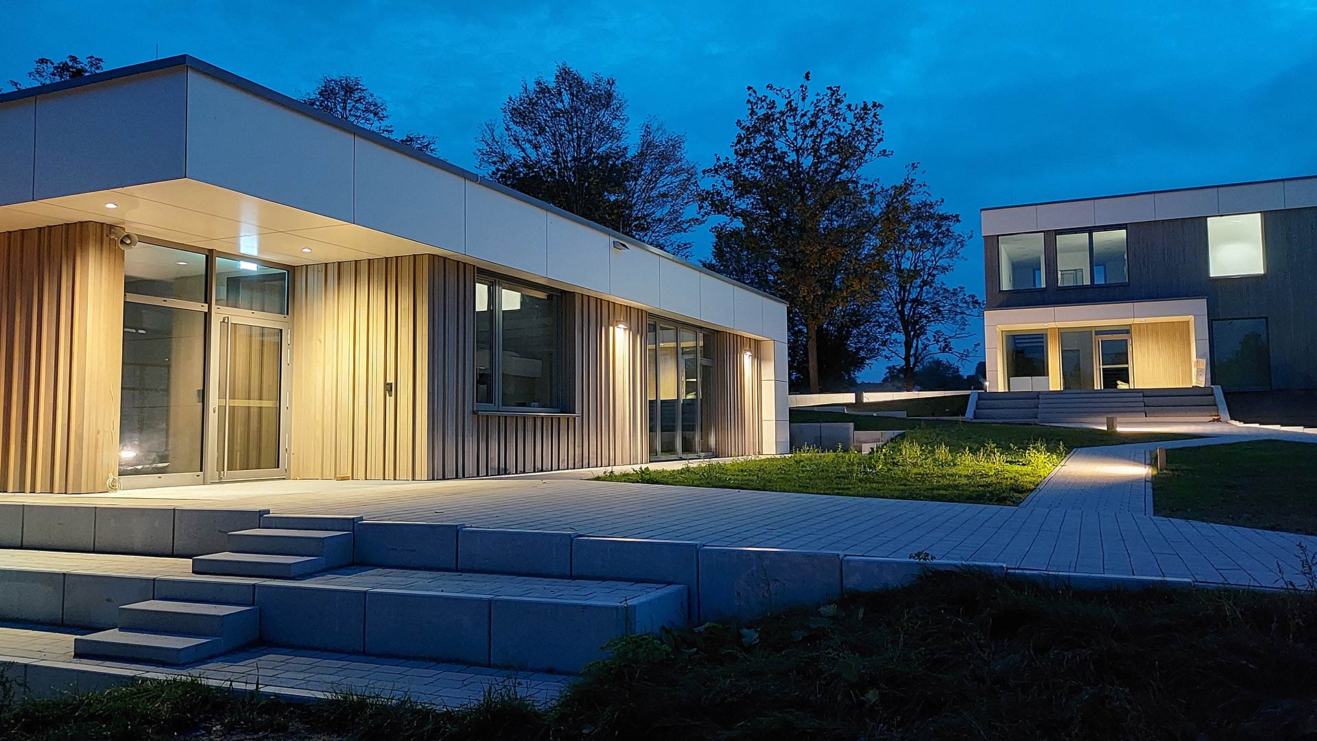 Beide Neubauten sind als nachhaltige, innovative Holzbauten geplant und errichtet worden. Der Energieverbrauch liegt etwa dreiviertel unter dem Niveau der Bestandsgebäude, was nicht nur der Umwelt zugutekommt, sondern auch langfristig die Betriebskosten senkt. Durch die Verwendung langlebiger, ökologischer Materialien und die Gestaltung mit viel Tageslicht sowie einer exzellenten Raumakustik haben wir eine hohe Aufenthaltsqualität für alle Nutzer geschaffen.