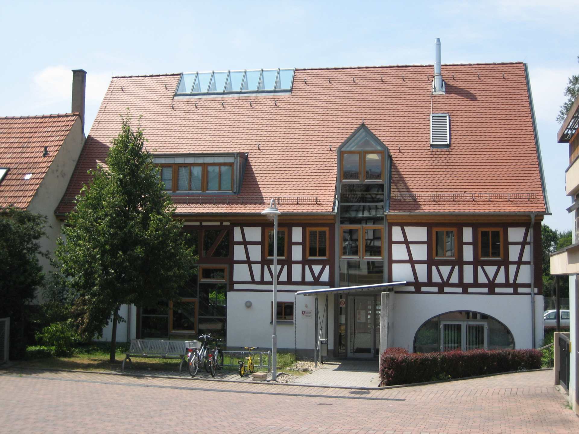 Die örtliche Musikschule erhält im Obergeschoss verschiedene Einzelunterrichtsräume und im Dachgeschoss einen großen, hellen Probenraum, der über ein Firstoberlicht belichtet ist.