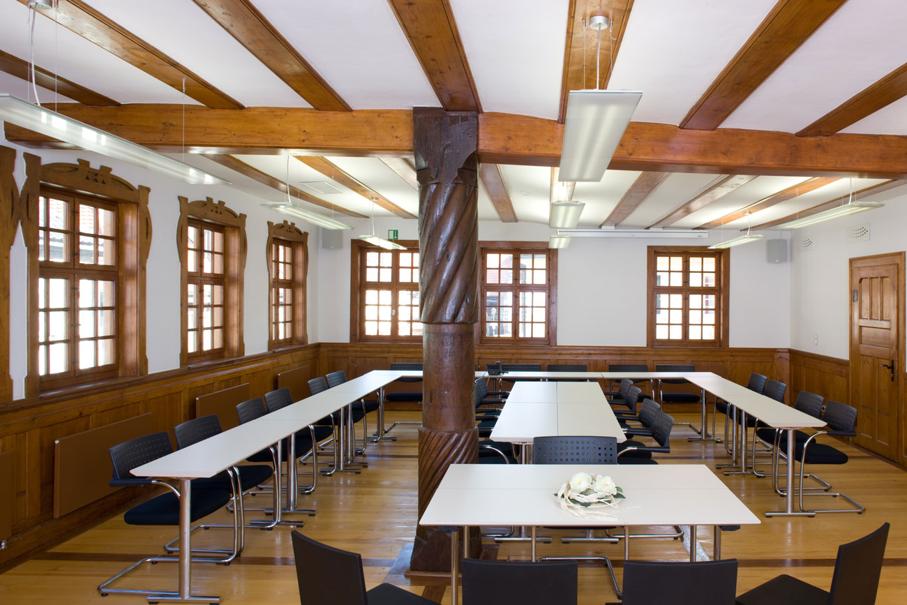 Das Rathaus besteht aus zwei Gebäudeteilen, dem unter Denkmalschutz stehenden Fachwerkgebäude aus dem Jahr 1530 und dem Anbau aus dem Jahr 1900. In einem 1. Bauabschnitt wurde das 2- geschossige Fachwerkgebäude saniert. Im bisher ungenutzten Erdgeschoss liegt nun das Bürgerbüro, im Obergeschoss der hochwertig mit historischen Holzverkleidungen ausgebaute Bürgersaal.